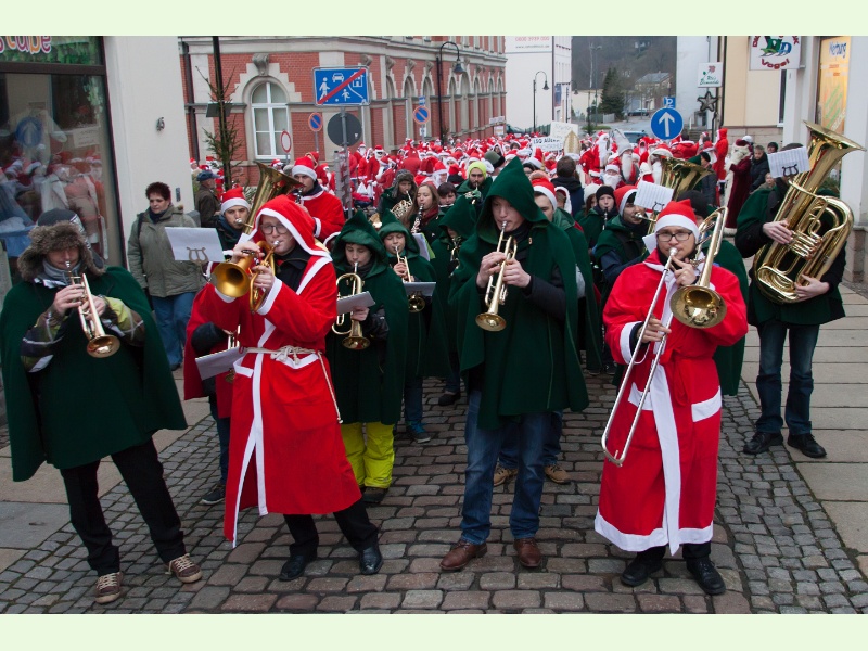 Tausende Schaulustige kamen auch dieses Jahr nach Auerbach, um das traditionelle Weihnachtsmännertreffen zu erleben.